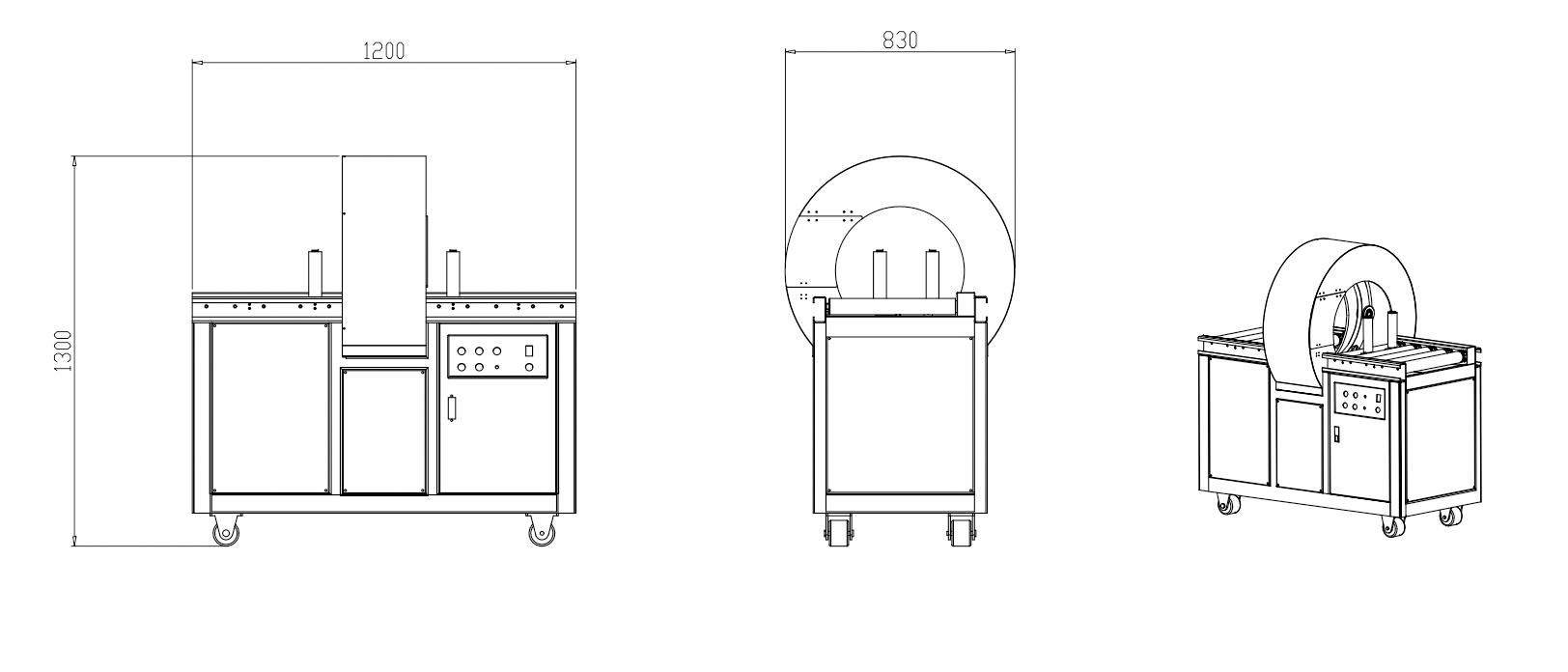 – Swing ring structure ring for quieter use environment and increased reliability. *Photocell automatically senses the products and starts wrapping. Auto film clamp & cut.